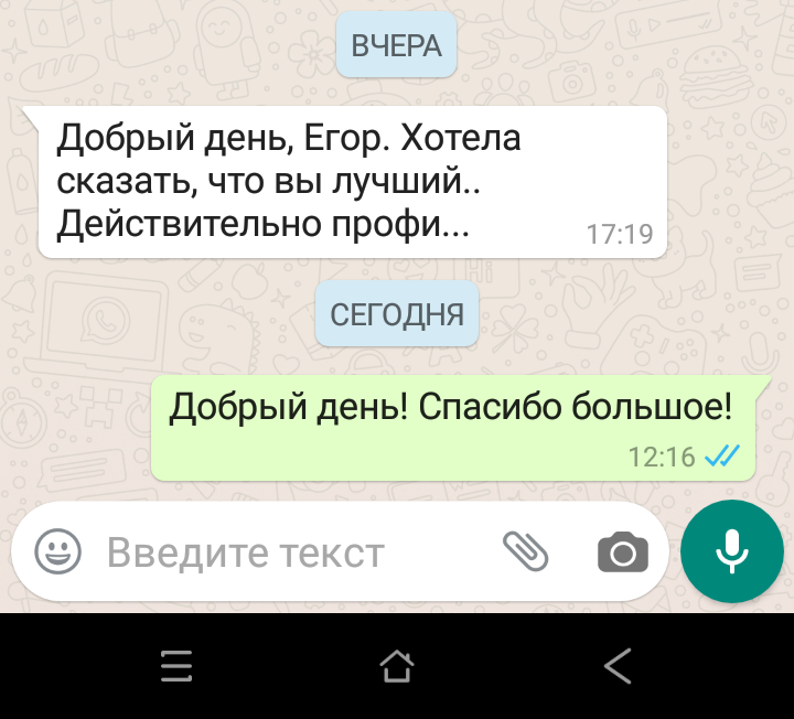 Егор, спасибо за ваше терпение и профессионализм. Я непростой клиент, но вы справились на отлично! Я рада что обратилась именно к вам!